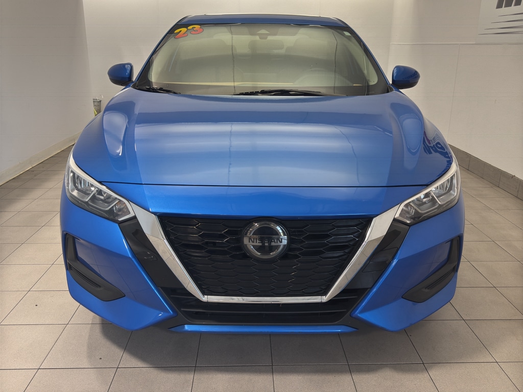 Mid-sized cars are the perfect size. Light weight alloy wheels on the vehicle are the perfect compliment to a stylish body. This unit comes equipped with Android Auto for seamless smartphone integration on the road. Apple CarPlay: Seamless smartphone integration for this 2023 Nissan Sentra - stay connected and entertained on the go! This Nissan Sentra keeps you comfortable with Auto Climate. The high efficiency automatic transmission shifts smoothly and allows you to relax while driving. See what's behind you with the back up camera on the Nissan Sentra. The Nissan Sentra shines with an exquisite blue finish. Good News! This certified CARFAX 1-owner vehicle has only had one owner before you. Our dealership has already run the CARFAX report and it is clean. A clean CARFAX is a great asset for resale value in the future. Set the temperature exactly where you are most comfortable in this vehicle. The fan speed and temperature will automatically adjust to maintain your preferred zone climate. Easily set your speed in it with a state of the art cruise control system. Increase or decrease velocity with the touch of a button. Electronic Stability Control is one of many advanced safety features on this unit. The Nissan Sentra has a 4 Cyl, 2.0L high output engine. This 2023 Nissan Sentra 's Forward Collision Warning system alerts the driver to potential front-end collisions, enhancing safety. This Nissan Sentra is front wheel drive. Enjoy the tried and true gasoline engine in the vehicle. This 2023 Nissan Sentra will allow to see the road and so much more with the HID headlights. Bluetooth technology is built into this model, keeping your hands on the steering wheel and your focus on the road. The Nissan Sentra is pure luxury with a heated steering wheel. This mid-size car's Lane Departure Warning keeps you safe by alerting you when you drift from your lane. The leather seats in this vehicle are a must for buyers looking for comfort, durability, and style. With the adjustable lumbar support in this unit your back will love you. The rear parking assist technology on this model will put you at ease when reversing. The system alerts you as you get closer to an obstruction.